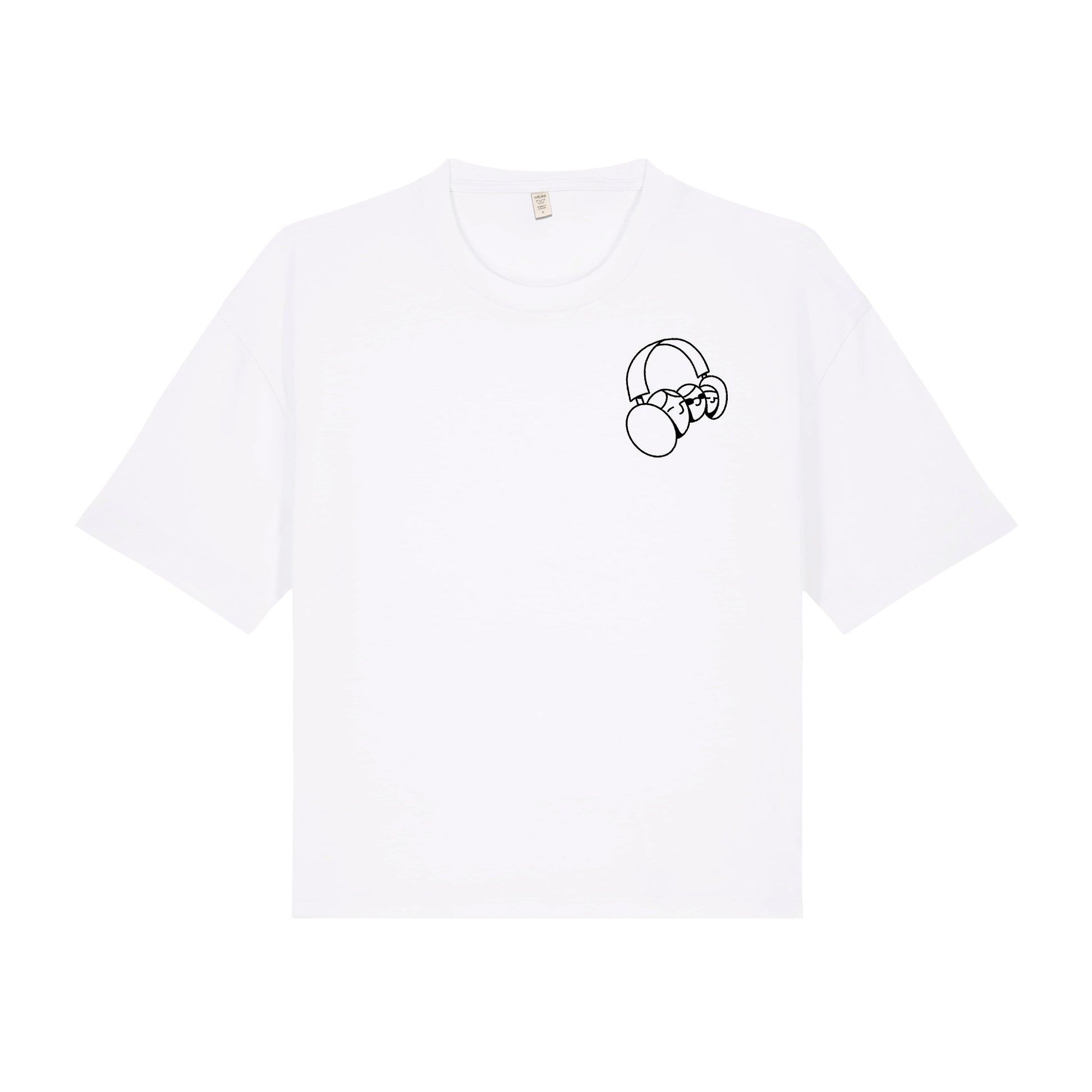 Camiseta corta con hombros ligeramente caídos y corte recto.